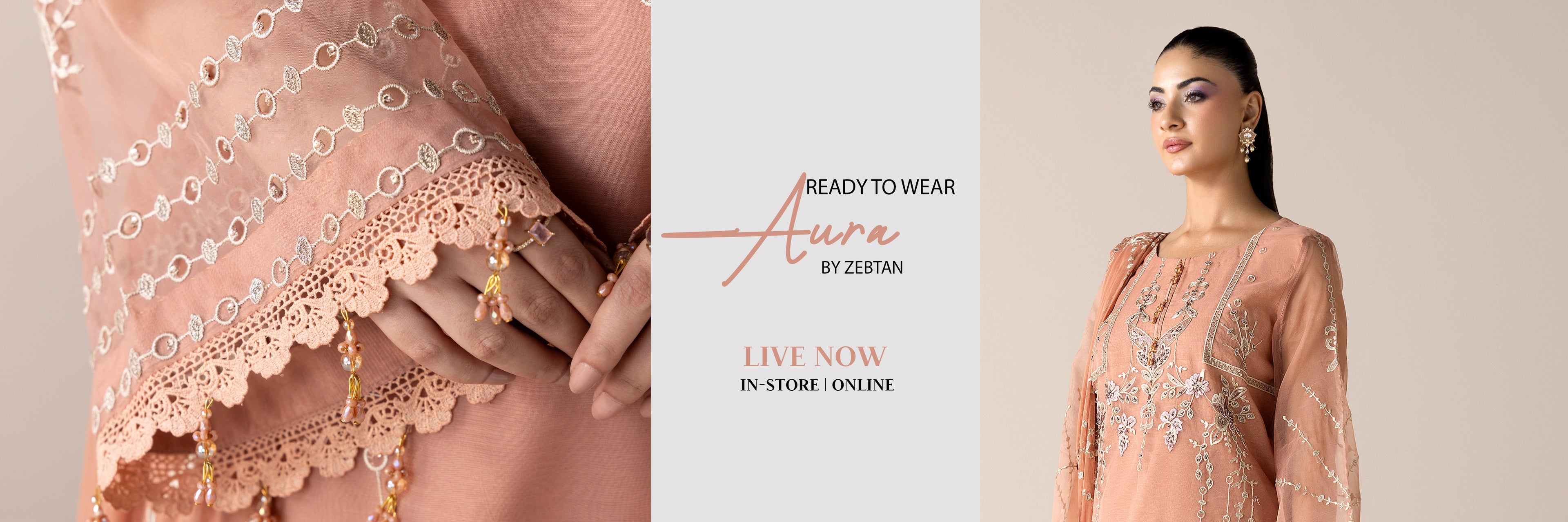 The Aura Collection by Zebtan celebrates timeless artistry in the form of luxurious unstitched ensembles. Crafted on premium chiffon with intricate embroidery and delicate organza accents, each piece is a canvas of elegance—ready to be styled as you desire.